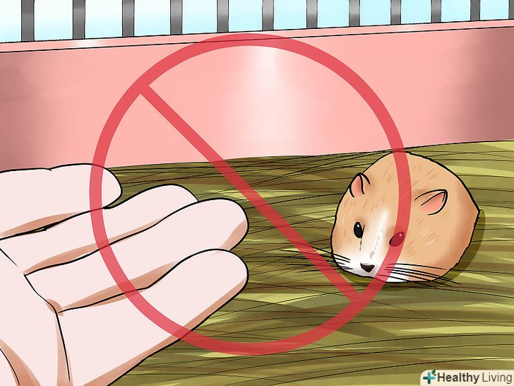Не засовуйте руку в клітку карликового хом'ячка. Джунгарские хом'ячки володіють сильним територіальним інстинктом, так що якщо ваш вихованець відноситься саме до цього виду, він може агресивно відреагувати, побачивши вашу руку в клітці, і кинеться захищати свій життєвий простір за допомогою зубів. Імовірність нападу особливо висока, якщо ви сунули руку в клітку несподівано для тварини, ніяк не попередивши його про вашу присутність. [24] Проявляйте особливу обережність, коли простягаєте руку до вихованця, що сидить в клітці.- Спробуйте поглянути на ситуацію з точки зору хом'яка. Його тільце маленьке і крихке, а ваша рука здається йому чимось величезним. Не дивно, що маленький звір сприймає її як загрозу своєму життєвому простору. [25]