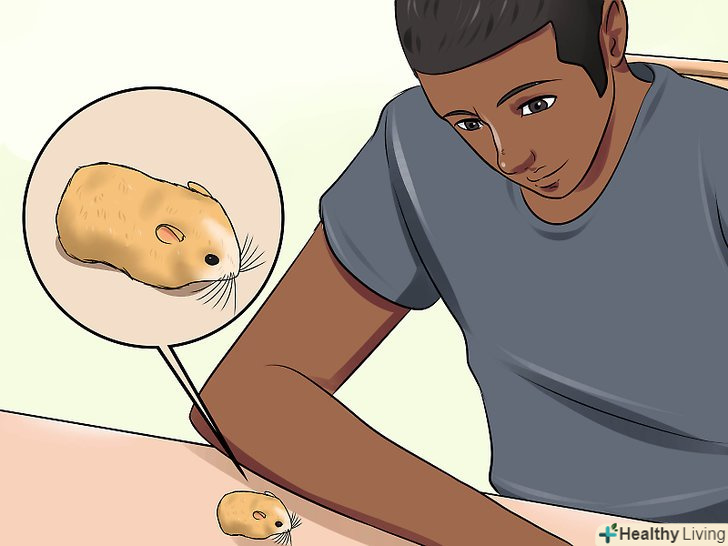 Навчіться розрізняти агресивні укуси і невинне покусування. коли ви будете приручати хом'ячка, вам, швидше за все, доведеться випробувати на собі гостроту зубів пухнастого малюка. Карликовий хом'ячок може вкусити вас, якщо він переляканий і думає, що ви представляєте для нього загрозу. Крім того, звір пускає в хід зуби, якщо йому набридло сидіти в клітці або він не дуже добре себе почуває. [18] на відміну від укусів, за допомогою яких хом'як намагається захистити себе, обережне покусування є природним способом, який допомагає звірку досліджувати предмети в навколишньому його обстановці. [19]- Укуси хом'яка рідко викликають кровотечу, проте біль, яку ви відчуєте, змусить вас відсмикнути руку і ставитися до вихованця з більшою обережністю. [20] легкі покусування зазвичай не викликають больових відчуттів.