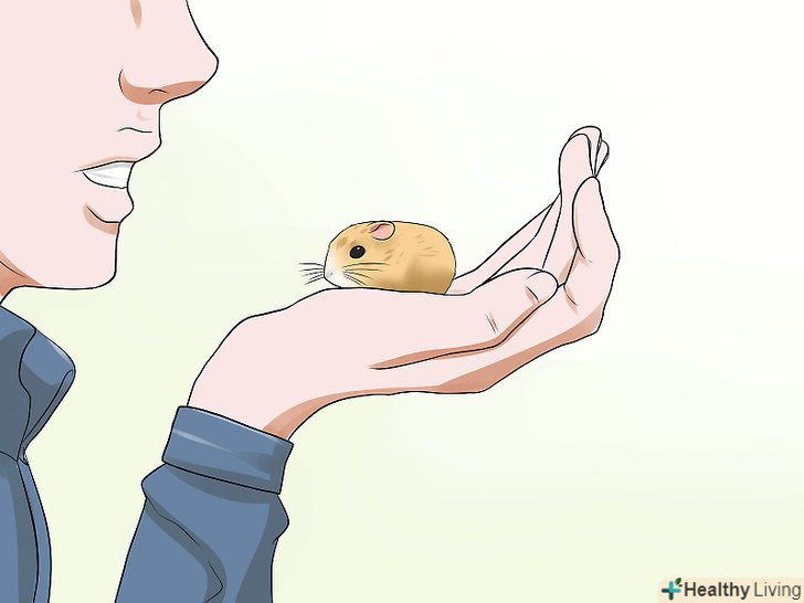 Розмовляйте з хом'ячком. через кілька днів, коли хом'ячок трохи звикне до нового будинку, починайте розмовляти з вихованцем, щоб він познайомився з вашим голосом. Особливо важливо розмовляти зі звіром, якщо ваш вихованець належить до російських карликовим хом'ячків — ці тварини мають слабкий зором і орієнтуються переважно за допомогою слуху. Чим краще хом'як буде впізнавати Ваш голос, тим менше ймовірність, що він вкусить вас, коли ви спробуєте взяти його на руки. [7] навіть якщо у вас хом'як іншого виду, обов'язково розмовляйте з вихованцем — це допоможе йому швидше звикнути до вас.- Намагайтеся завжди розмовляти з вихованцем ласкавим, неголосним голосом.
