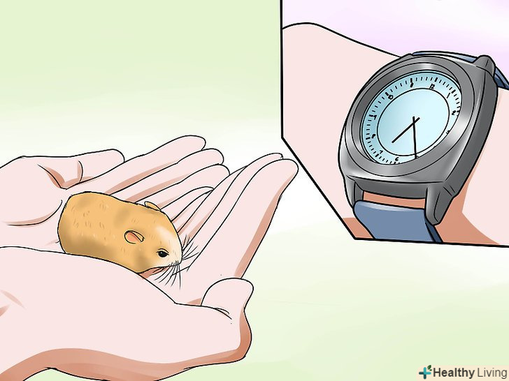 Вибирайте правильний час для приручення хом'ячка. у природі хом'яки ведуть нічний спосіб життя, тобто вони найбільш активні в темний час доби. Відведіть час в кінці дня, наприклад, після вечері, коли ваш вихованець з більшою часткою ймовірності буде не спати. Якщо ви бачите, що хом'ячок тільки прокидається, почекайте 15 хвилин, перш ніж намагатися брати його на руки. [8]- Якщо ваш карликовий хом'ячок спить, не намагайтеся його будити. Якщо ви потривожите сплячого звірка, він злякається, подумає, що ви представляєте для нього загрозу, і пустить в хід зуби, щоб захистити себе. [9] наберіться терпіння і почекайте, поки хом'ячок прокинеться сам.