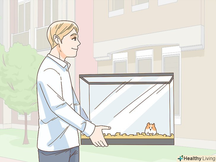 Перемістіть свого вихованця в клітці. такі тварини, як хом'ячки, морські свинки, гризуни, Рептилії і амфібії можуть бути перенесені в будинок друга або професійного наглядача за вихованцями. Напишіть, ка його годувати, скільки поїти, як часто чистити клітку і яку температуру підтримувати. Упакуйте всі речі, що імітують навколишнє середовище тварини будинку. Це можуть бути підстилки, нагрівальна поверхня або прикраси. [12]- Якщо клекту не можна перенести, комусь потрібно буде щодня перевіряти тварину.
