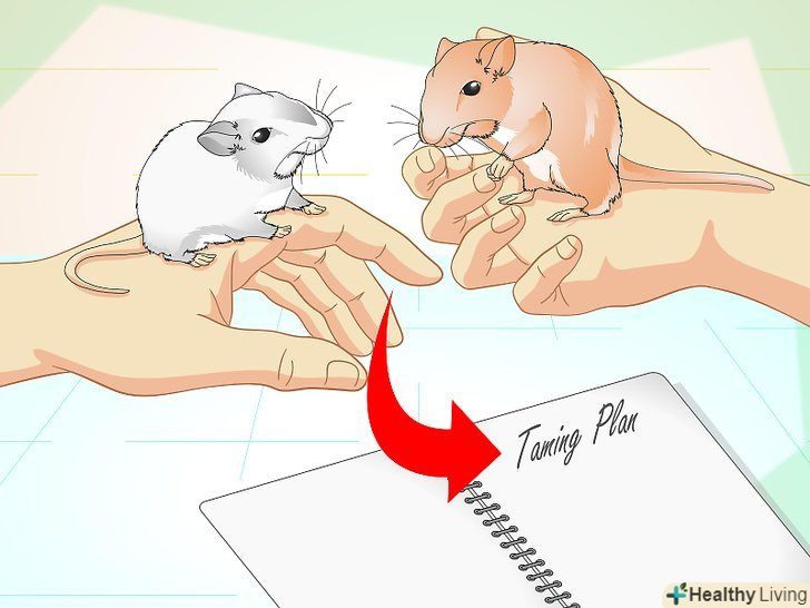 Складіть план приручення. розробіть план, якому ви зможете постійно слідувати, так як приручення піщанок вимагає часу і терпіння. [17] складання плану дасть вам можливість проаналізувати характер вашої піщанки і різні фактори, які можуть вплинути на процес приручення, наприклад, молодий або дорослий вік піщанки.- Процес навчання піщанки повинен приносити задоволення і вам, і вихованцеві. Навіть простий шанс побігати по ваших колінах буде цілком цікавий для піщанки. [18]