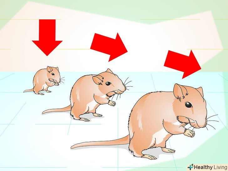 - Обов'язково перевірте стан здоров'я купованих піщанок. Їх хутро повинен бути густим і блискучим, очі повинні бути яскравими і блискучими, ніс – чистим, а зуби – прямими. [15] якщо ви помітите у піщанки будь-які проблеми, запитайте про них у заводчика, або виберіть іншу піщанку, яка здасться вам більш здоровою.