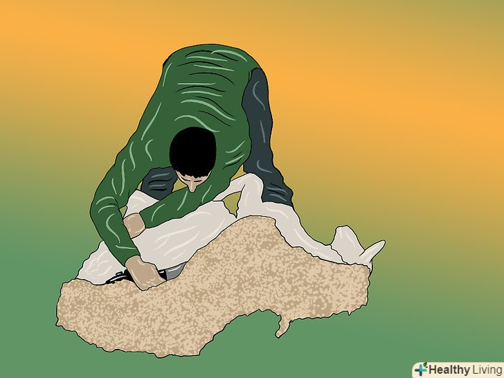 Видаліть обрізки вовни і скрутіть руно. після закінчення стрижки вам необхідно видалити обрізки вовни і скрутити руно (якщо ви збираєтеся продати шерсть).- Видалення обрізків вовни полягає в прибиранні брудних або окремих (випадково відрізаних) ділянок вовни, які не призначені для продажу. Для цього розкладіть зрізану шерсть зістриженою стороною вниз на столі або іншій поверхні. Розправте шерсть так, щоб вона лягла одинарним шаром.