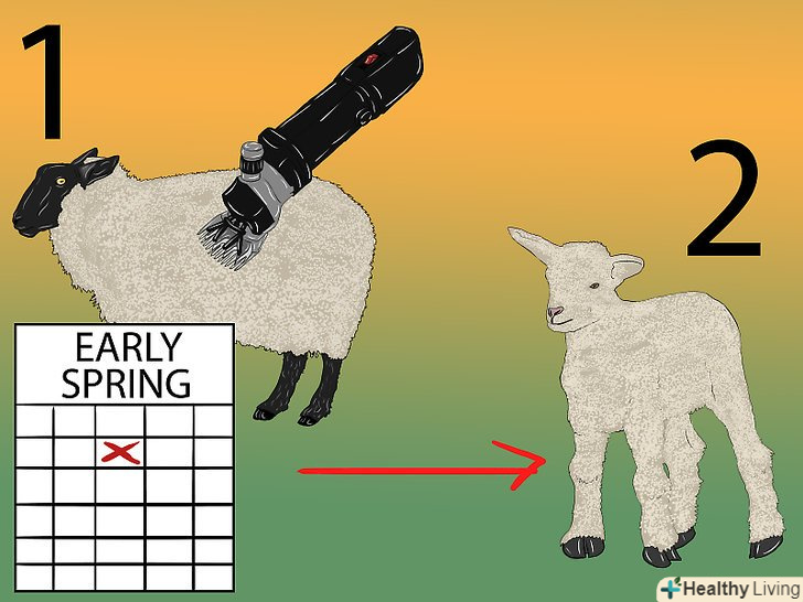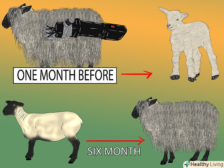 - Постарайтеся обстригти овець за місяць до ягняти. Так у них буде час на те, щоб оговтатися від стресу, отриманого під час стрижки. Якщо у вас порода овець з швидкозростаючою шерстю (котсвелдская, ісландська або Лінкольн), налаштуйтеся на стрижку овець пізнім літом або ранньою осінню. Вівці потрібно, принаймні, 6 тижнів для відрощування вовни перед настанням зими. [2]