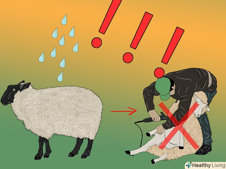 - Не дайте вівцям промокнути. вівці не повинні потрапити під дощ перед стрижкою. Цього не можна допустити, так як є ймовірність отримати електричний удар від машинки для стрижки, а мокру шерсть не можна згорнути і продати.