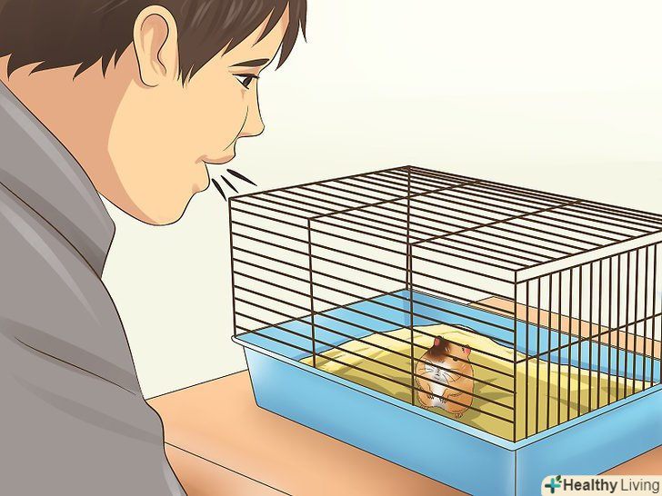 Допоможіть хом'яку навчитися впізнавати Ваш голос. коли ви знаходитесь поблизу від клітки, намагайтеся говорити з вихованцем неголосним, ласкавим голосом. Вам потрібно, щоб пухнастий улюбленець навчився впізнавати ваш голос — тоді він перестане Вас боятися. [4]- Спробуйте підійти до клітки і протягом декількох хвилин ласкаво розмовляти з вихованцем. Буде добре, якщо ви зможете робити це кілька разів на день.