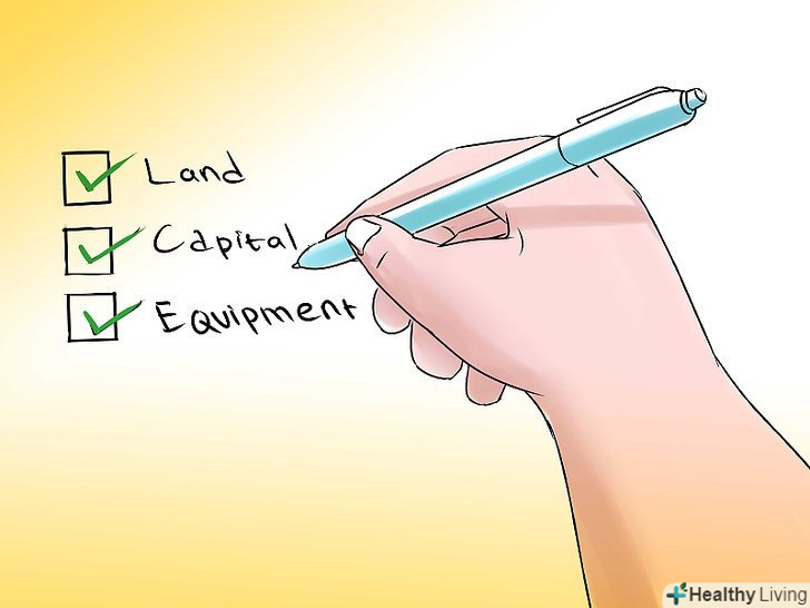 Вам знадобляться: земля, капітал та обладнання. Ви не зможете ні організувати, ні утримувати курячу ферму або бізнес з розведення курей без цих вкрай необхідних умов. Також необхідно приміщення, в якому ви будете розводити птицю, будь то спеціально обладнаний курник або клітини, в залежності від способу вирощування курей: традиційного або вільного вигулу. Земля знадобиться для того, щоб розміщувати на ній курники і для того, щоб вирощувати корм для птиці. Обладнання та технічне оснащення необхідно для чищення приміщень, прибирання полеглої птиці, складання продукції і т. п.