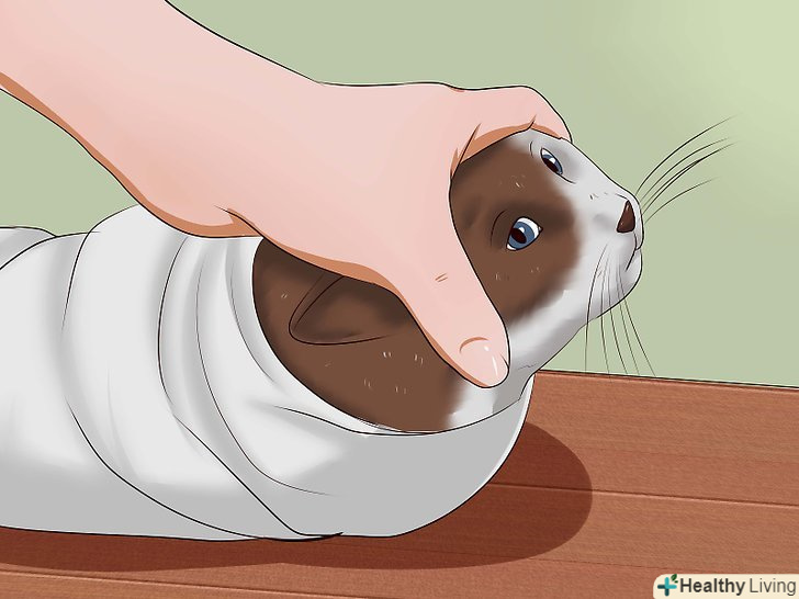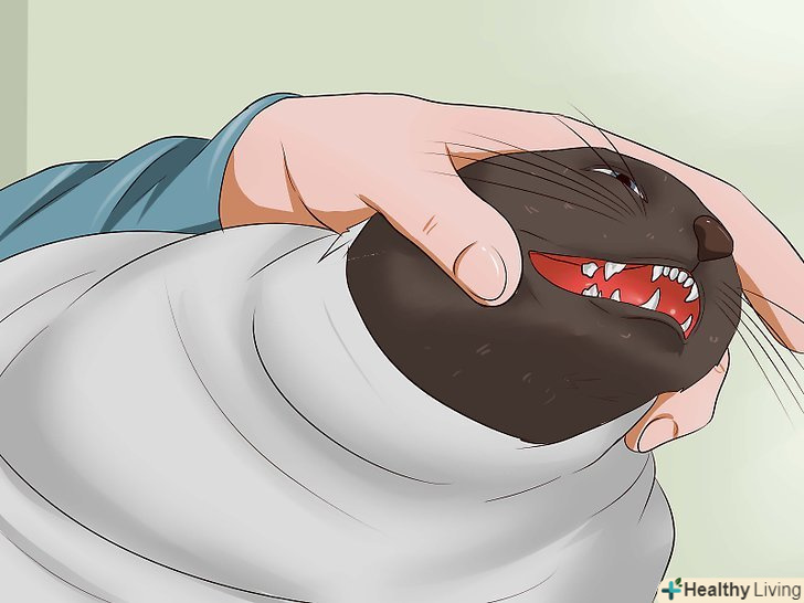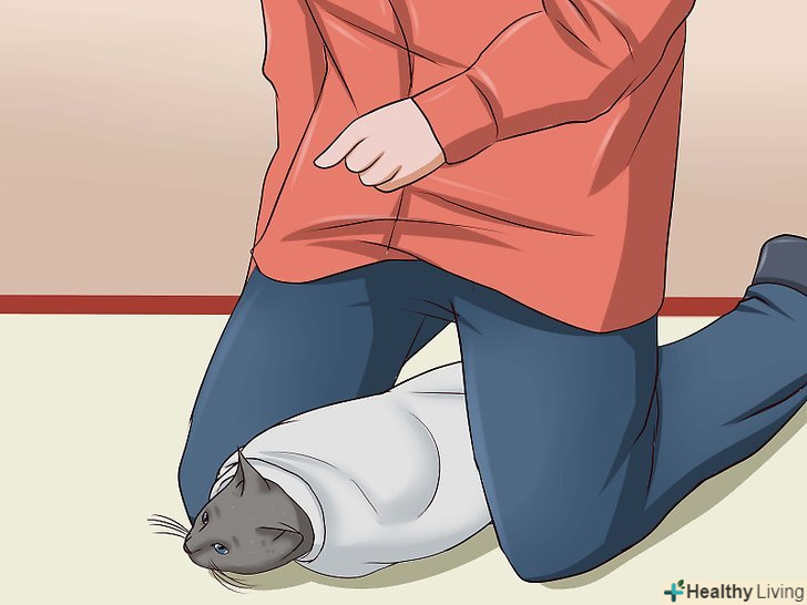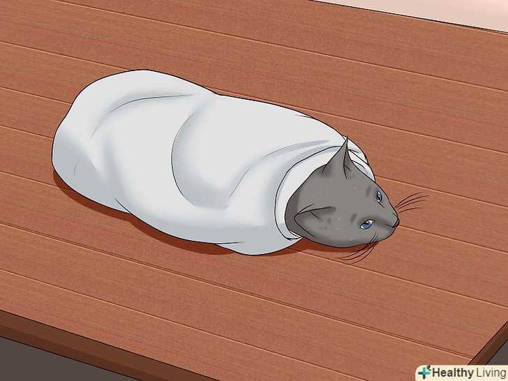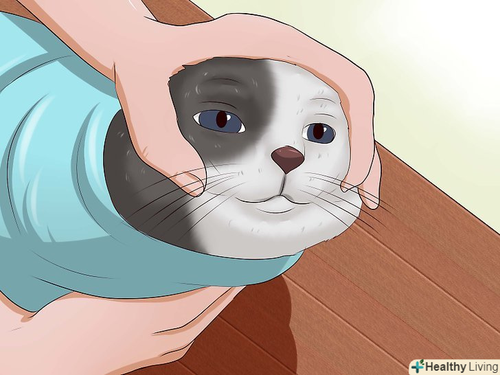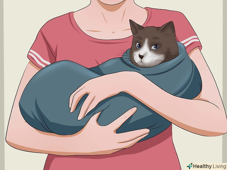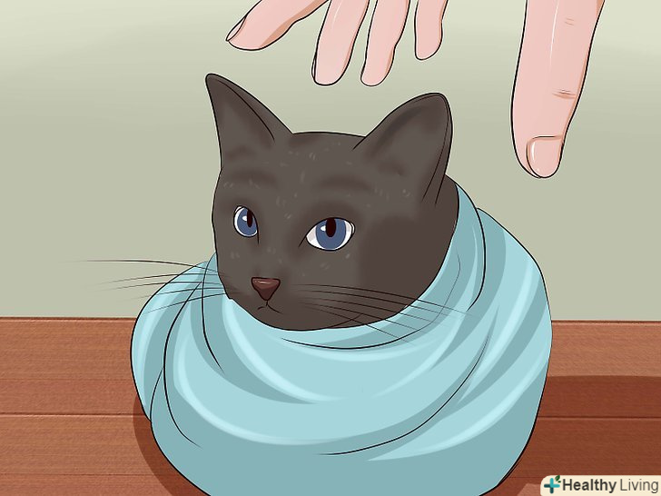 Оберніть кішку рушником. якщо кішка буде дряпатися, краще обернути її рушником. Розстеліть великий рушник або ковдру і посадіть зверху тварина. Оберніть кішку рушником, так щоб тіло разом з лапами виявилося всередині. Голова повинна залишитися зовні. [3] це схоже з тим, як зазвичай сповивають немовлят, і так ви захистите себе від кігтів.- Лапи кішки будуть притиснуті до тіла, завдяки чому тварина не зможе подряпати вас.