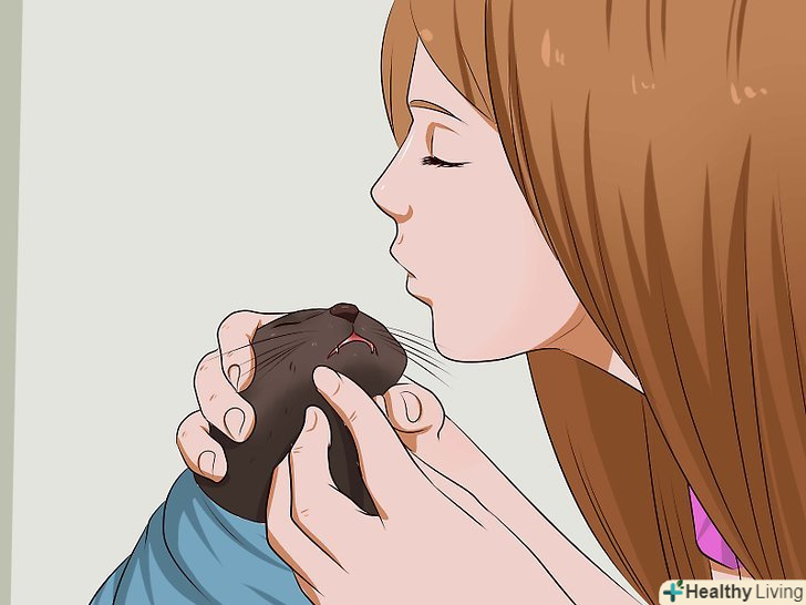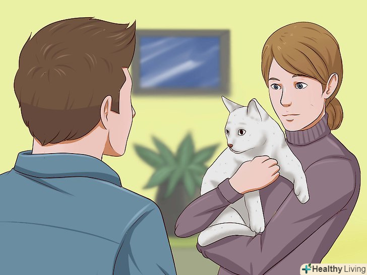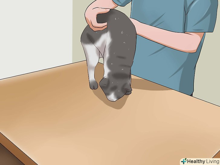 Поставте кішку на стіл. акуратно візьміть її під живіт і посадіть на стіл. Попросіть помічника взяти кішку за плечі і направити голову в вашу сторону. [2]