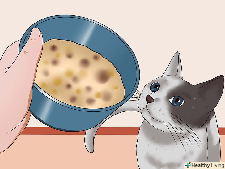 Сховайте таблетку у вологому кормі. Дайте кішці чверть її порції, поклавши туди таблетку. Коли тарілка спорожніє, покладіть туди залишки їжі. [14]- Щоб кішка з ще більшою ймовірністю з'їла цей корм, дайте їй її найулюбленіші ласощі. Сховайте в ньому таблетку і дайте разом з їжею.