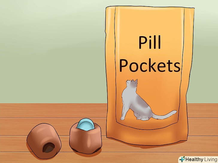 Покладіть таблетку в спеціальні ласощі з кишенею для ліків. існують спеціальні ласощі для кішок, в яких передбачені порожнини для таблеток. Дуже смачна зовнішня оболонка маскує смак таблетки, і кішка із задоволенням з'їдає частування. [15]- Такі ласощі бувають з різними смаками. Купити їх можна у ветеринарній аптеці або лікарні.