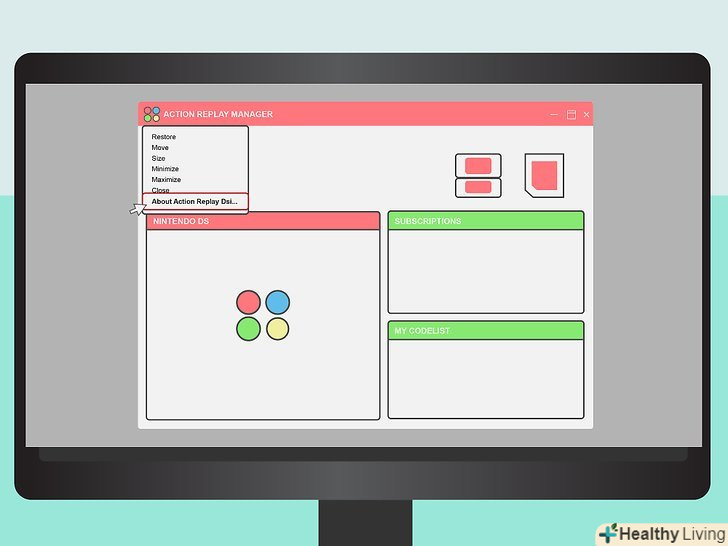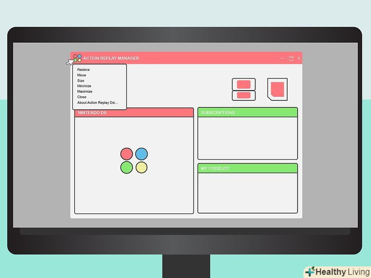 У вікні програми Action Replay Сode Manager натисніть кнопку "Налаштування" (Options). Значок цієї кнопки являє собою чотири кольорові точки і розташований зліва від фрази «Action Replay DSi/DS Code Manager». Натисніть цю кнопку, щоб відкрити настройки Action Replay Сode Manager.