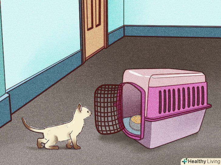 - Спробуйте поставити перед перенесенням миску з кормом, щоб стимулювати інтерес кішки до перенесення. [12]