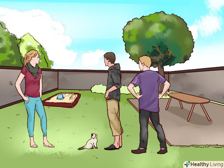 Виберіть відповідне місце для соціалізації. непогано розширити контакти кошеня з людьми, спілкуючись з ним на жвавій території. Це може бути територія двору, де працюють або грають інші люди. Або ж це може бути якась кімната вашого будинку. [17]