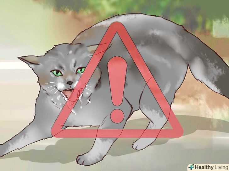 Тримайтеся подалі від кішки, якщо підозрюєте у неї симптоми сказу. бродячі кішки і кошенята в більшості своїй не щеплені від сказу, що піддає їх деякому ризику зараження цим смертельним вірусом. Незважаючи на те, що нещеплені вуличні кішки і кошенята не дуже часто заражаються сказом, такий ризик все ж присутній. Симптоми сказу можуть проявлятися по-різному, при цьому до їх появи можуть пройти місяці з моменту фактичного зараження тварини вірусом.- Класичним симптомом прояву сказу у кішок і кошенят є хворобливий стан (апатія, відмова від їжі, слабкість) і/або зміна поведінки (агресія, занепокоєння, дезорієнтація, параліч, напади). [6]