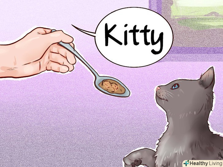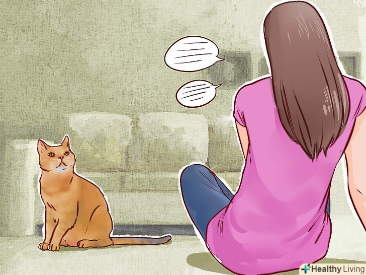 Познайомте кішку зі звуком вашого голосу. якщо кішка здалася вам піддається до приручення, вашим наступним кроком має стати її привчання до звуку вашого голосу. Сідайте неподалік від кішки і розмовляйте з нею спокійним ласкавим голосом. [7]