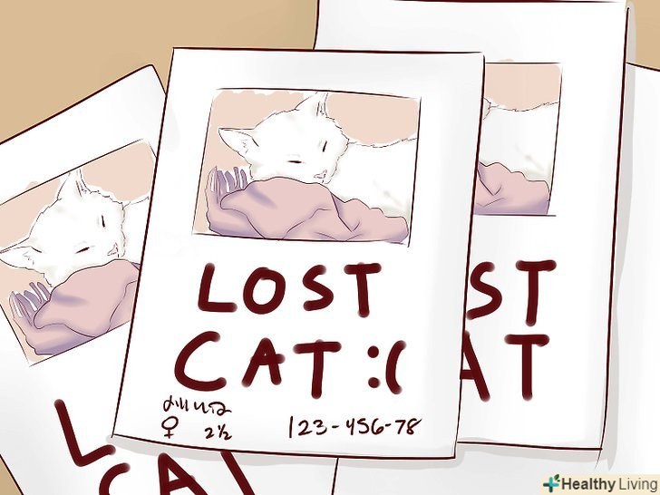 Надрукуйте оголошення про зниклу кішку. якщо вам не вдалося знайти кішку поруч з будинком, є ймовірність, що вона знайдеться за допомогою оголошень. Розвісьте оголошення про зниклу кішку в дозволених для розклеювання оголошень місцях - так ваші сусіди по району зможуть дізнатися вашу кішку і зв'язатися в вами. Ось кілька порад про те, як створити зрозуміле і інформативне оголошення: [9] [10]- Макет і стиль оголошення повинні бути простими і зрозумілими.
