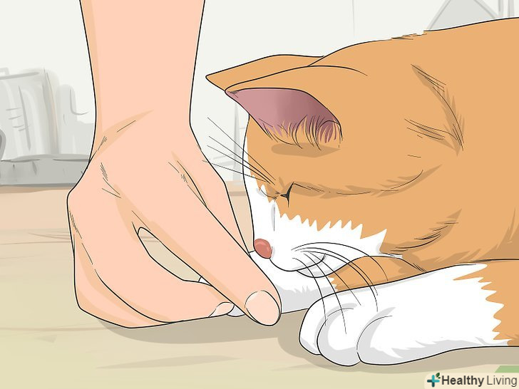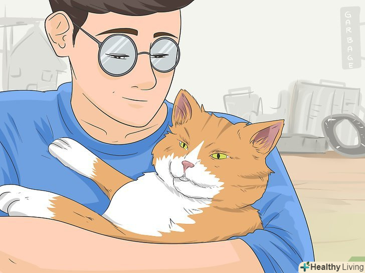 - Акуратно підніміть кішку і посадіть на коліна. Погладьте її, якщо вона вам дозволить це, і поговоріть з нею спокійним голосом. [50]