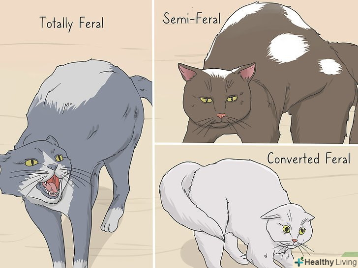 Оцініть ступінь дикості кішки. Тварини можуть бути повністю дикими (вони ніколи не спілкувалися з людиною або цей досвід був негативним), наполовину дикими (у них позитивний досвід спілкування з людиною) або здичавілими (викинуте Домашня тварина, яке стало диким). [55] найскладніше приручити повністю диких кішок, а найпростіше - тварин, які колись жили з людиною. [56]