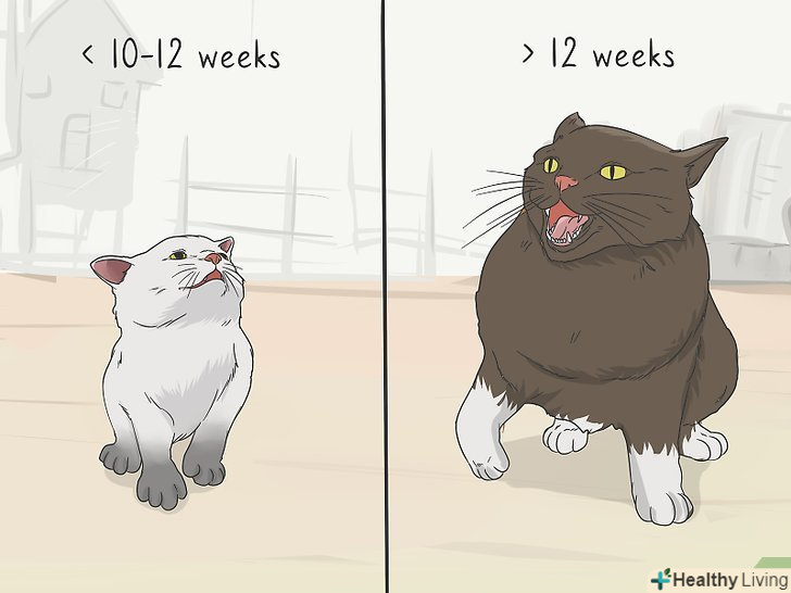 Хоча б приблизно визначте возвраст тварини. це дозволить вам зрозуміти, наскільки складно буде приручити його. Дикі кошенята, особливо молодше 10-12 тижнів, зазвичай приручаються досить легко. [59] [60] дорослих тварин, які довгий час прожили на вулиці, приручити найскладніше, якщо це взагалі можливо. [61]- Віднімати диких кошенят від матері не можна, поки вона сама не перестане їх годувати (це відбудеться приблизно через 4 тижні після народження). [62]
