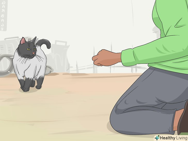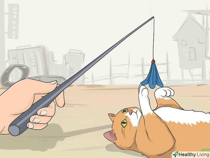 Грайте з кішкою. це дозволить кішці звикнути до вас, завдяки чому потім вам буде простіше взяти її на руки. Купуйте легкі іграшки в зоомагазині і запропонуйте їх кішці, коли будете сидіти з нею. [34] можна зробити "дражнилку" для кішки самостійно: прив'яжіть шматочок тканини до мотузки і закріпіть на палиці. [35]- Не дозволяйте кішці грати з дражнилкою одного - вона може проковтнути мотузку, що призведе до проблем з кишечником, і кішці буде потрібно термінова медична допомога. [36]