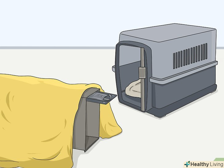 - Влаштуйте в приміщенні місця, де тварина могла б ховатися (наприклад, поставте перевернуту картонну коробку з отворами для входу і виходу). [10]