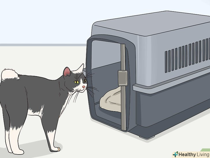 Поставте в приміщення перенесення. Вам потрібно буде відвезти кішку до ветеринара на огляд (зробити щеплення, провести дегельмінтизацію, перевірити тварину на наявність різних вірусів). [15] найпростіше буде перевозити кішку в перенесенні, а не в пастці для тварин. [16]- Залиште кришку перенесення відкритою і покладіть всередину кілька ковдр і ласощі, щоб кішці було спокійніше.