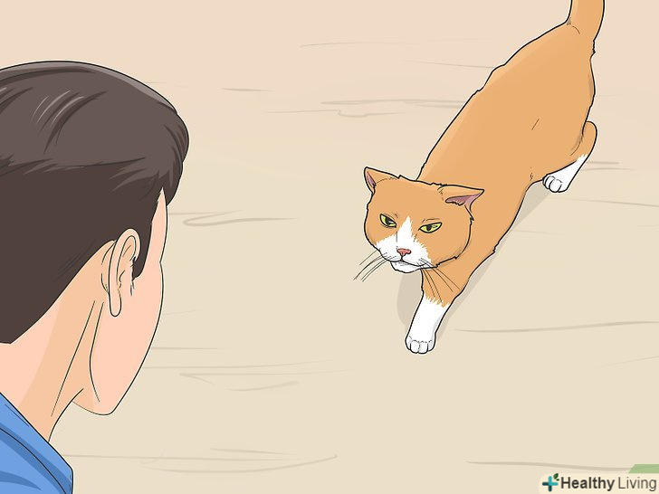 - Не дивіться на кішку в упор - тварина може сприйняти це як агресію. Відводьте очі і опускайте голову. [30]