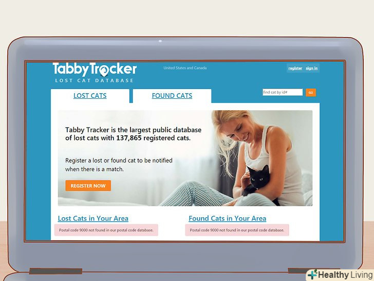Розмістіть в Інтернеті кольорову фотографію вихованця. багато людей, підібравши тварину, намагаються знайти його власників через Інтернет. Подумайте про те, щоб самостійно розмістити в соціальних мережах фотографію зниклої кішки або пошукати зображення свого вихованця серед фотографій численних сайтів, присвячених знайденим тваринам. У всіх власних повідомленнях для соціальних мереж не забувайте вказати контактну інформацію.- Серед сайтів розшуку тварин слід згадати Propala.ru , Findapet.ru і Zoosearch.ru .