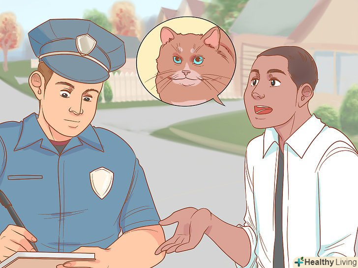 Спробуйте повідомити в поліцію про зникнення. іноді в поліцію повідомляють про знайдених тварин, особливо в тих місцях, де немає притулків для них. Крім того, патрулюючі вулиці працівники правоохоронних органів можуть також помітити де-небудь вашу кішку.- Не дзвоніть в поліцію за номером екстреного виклику! Зателефонуйте за звичайним телефоном або спробуйте поговорити з місцевими патрульними або дільничним. Незважаючи на те, що пропажа кішки для вас є надзвичайною ситуацією, поліцейські зазвичай зайняті набагато важливішими справами.