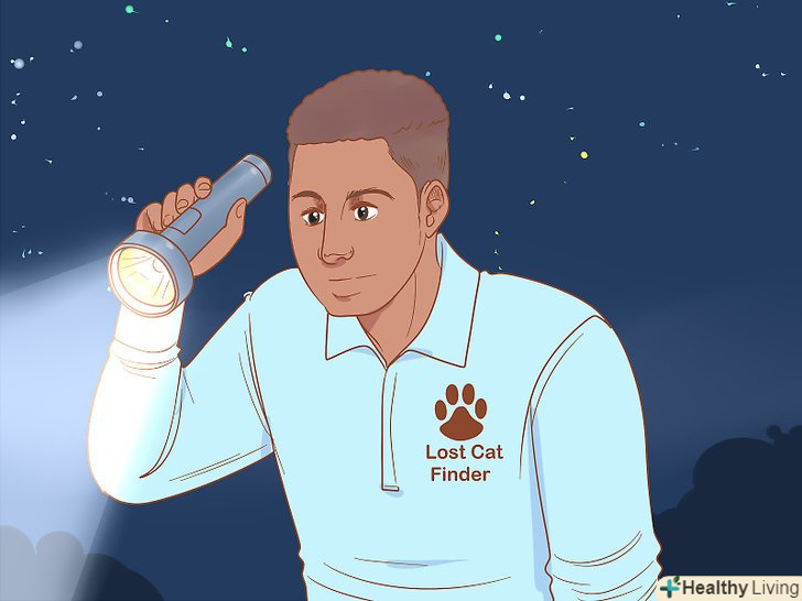 Спробуйте повторно пошукати кішку після заходу сонця. якщо в перший раз ви безуспішно шукали тварину вдень, поверніться і повторіть всі дії після настання темряви, коли на вулиці стане помітно тихіше. Не забудьте прихопити ліхтарик і почніть Ласкаво кликати кішку. Заблукали кішки часом охочіше залишають свої укриття з настанням ночі, так як в темряві вони відчувають себе в більшій безпеці.