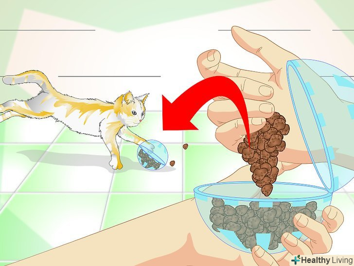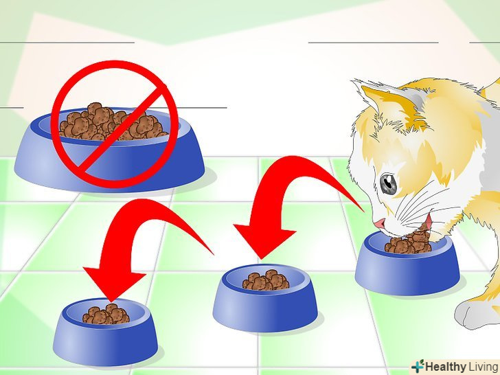 - Можна також насипати невеликі порції корму в невеликі миски і розставити їх по всьому будинку, щоб кішці довелося рухатися в пошуках нової порції. Так кішка буде сприймати час годування як полювання, коли вона фізично і розумово активна, і не стане поспішати під час їжі. [6]