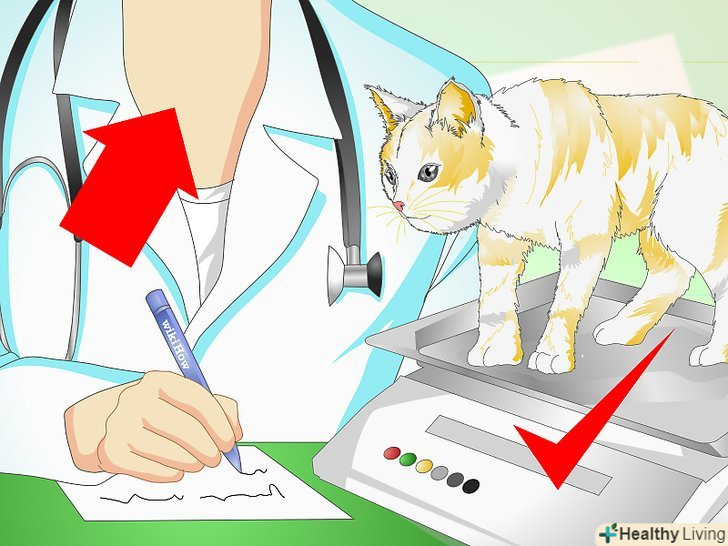 Якщо після всіх зусиль кішка продовжує швидко заковтувати їжу, але при цьому виглядає виснаженою, покажіть її ветеринару. якщо ви вже спробували кілька з цих прийомів, але ваша кішка все ще їсть дуже швидко і не набирає при цьому вагу або не наїдається, можливо, вона нездорова і їй потрібна медична допомога. Покажіть кішку ветеринару, щоб лікар виключив проблеми зі здоров'ям. [8]