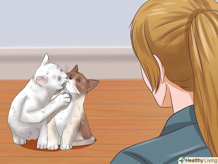 - Такий вид агресії часто зустрічається у кошенят, які були єдиними в посліді, або у штучно вигодуваних кошенят. Їм не вистачає соціалізації з іншим кошенятами, які могли б поставити їх на місце при занадто сильних ударах лапами або укусах. Проте вам не слід лупити кота у відповідь. Просто навчіться читати мову тіла свого вихованця, щоб бачити, коли тварина ось-ось зірветься. Кіт може дати єдиний сигнал посмикуванням хвоста, може перестати муркотіти, а шкіра на його спині може почати посмикуватися. На даному кроці негайно припиніть гладити вихованця і встаньте, знявши його зі своїх колін. [9]