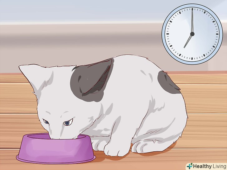 Годуйте кошеня в один і той же час. це дасть вам можливість зрозуміти, коли кошеня захоче в туалет. Як правило, кошенятам потрібно в туалет через 20 хвилин після їжі. Якщо вам здасться, що цей час настав, віднесіть вихованця до лотка і дайте йому залізти туди.