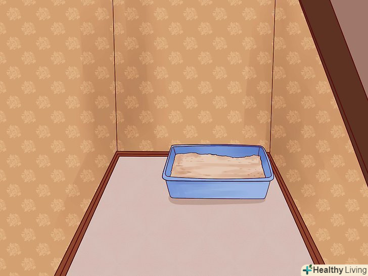 Розмістіть лоток в затишному куточку. Не ставте його в місці, де постійно ходять люди, — наприклад, на кухні або в передпокої. Лоток повинен стояти так, щоб кошеня відчував себе там на самоті і щоб поруч не було раптових різких звуків, які налякали б його. [8]- Хоча лоток часто ставлять у ванній кімнаті, оскільки там рідше ходять, різкі і гучні звуки пральної машини можуть налякати кошеня і змусити його відмовитися від лотка. [9]