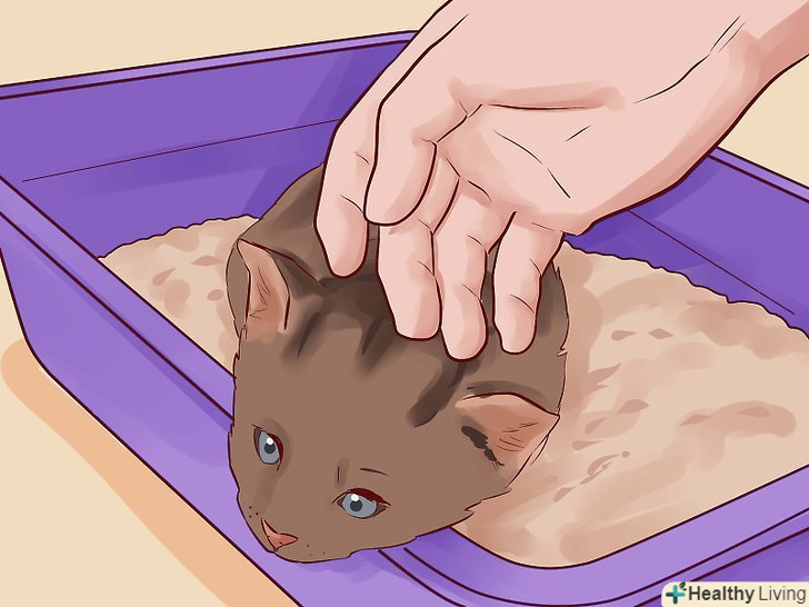 - Не намагайтеся зобразити закопування, оскільки це може налякати кошеня. Не беріть Кошеня за лапи і не копайте ними наповнювач. [11]