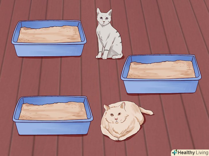 Розставте кілька лотків по дому. в ідеалі слід мати по лотку на кожного кота в будинку плюс ще один додатковий.- Кошеня має мати два варіанти лотків на вибір. Якщо у вас три кота, слід поставити чотири лотка.