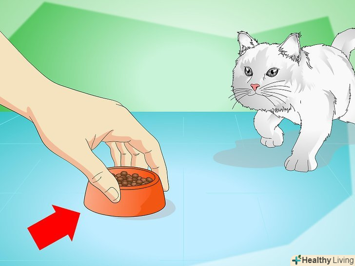 - Поставте туалет далеко від мисок. Кошенята не люблять, коли їжа стоїть поблизу туалету. [29]
