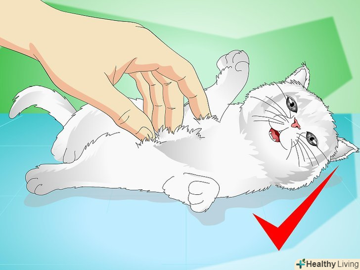 Гладьте кошеня обережно. це можна робити і поруч з кошеням, і коли він буде у вас на руках. Це заспокоїть тварину, зупинить крик і сприятиме формуванню прихильності. [12]- Гладьте кошеня по голові, по шиї і під підборіддям. Не торкайтеся хвоста та інших чутливих ділянок.