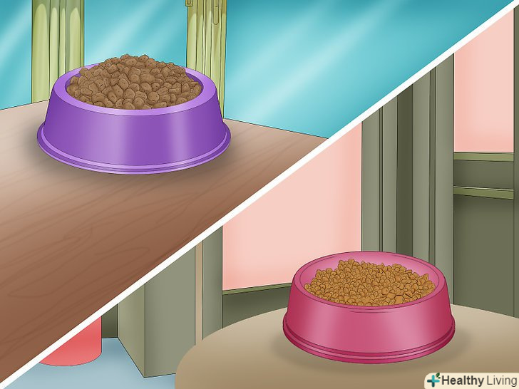 Почніть годувати тварин з протилежних сторін одних дверей. у проміжках між короткими зустрічами ви можете посприяти акліматизації тварин, наприклад, почати годувати їх з протилежних сторін однієї і тієї ж зачинених дверей. Це допоможе їм усвідомити присутність поруч іншого вихованця.- Якщо кіт занадто наляканий, щоб їсти, пересуньте його миску на таку відстань від дверей, на якому він вже не буде відчувати страху. Кожне годування підсувайте миску на кілька сантиметрів ближче до дверей.