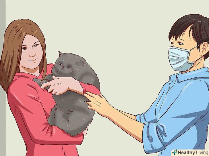 Покличте когось, хто допоможе вам утримувати вихованця під час купання. по можливості залучіть до купання члена сім'ї або друга. Попросіть людину обережно притримувати кішку за загривок (з мінімальним зусиллям, щоб не викликати при цьому дискомфорту або больових відчуттів), поки ви будете її купати.