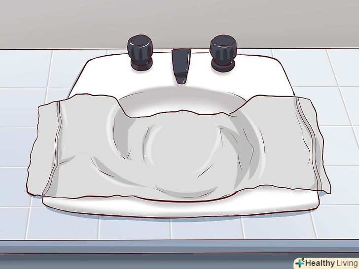 Постеліть на дно ванни або раковини рушник. щоб кішка не подряпала Вам руки, підстеліть їй рушник, в яке вона зможе вчепитися кігтями. Переконайтеся в тому, що рушник укладено надійно і не буде ковзати, коли під час купання кішка запустить в нього кігті.- Також можна встановити в ванну або раковину під кутом 45 градусів віконну сітку невеликого розміру (при її наявності), щоб кішці було за що триматися.