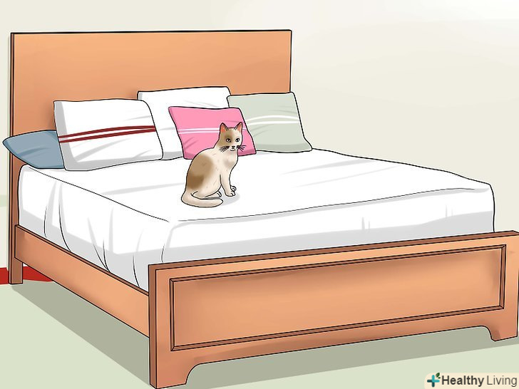 Віднесіть кішку в найдальшу кімнату. наприклад, якщо спальня знаходиться в далекій західній частині будинку, а феєрверки лунають зі східного боку, то спальня стане підходящим варіантом.- Акуратно візьміть кішку на руки , так як вона, ймовірно, буде дуже налякана і постарається вирватися. Також цілком можливо, що у вас на руках вона відчує себе в безпеці. Все залежить від типу особистості вашої кішки.