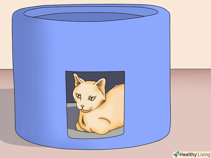 Влаштуйте для кішки затишне місце. якщо ви намагаєтеся подружитися з кішкою, обов'язково влаштуйте для неї затишне місце, куди вона могла б сховатися, якщо втомиться, не захоче спілкуватися або злякається.- Не витягуйте кішку з затишного місця. Якщо кішка ховається туди, це означає, що вона втомилася і хоче відпочити. Якщо витягнути налякану кішку з цього місця, вона перестане вважати свій куточок безпечним, через що буде лякатися і, можливо, вести себе небажаним чином: дряпати меблі, мітити квартиру.