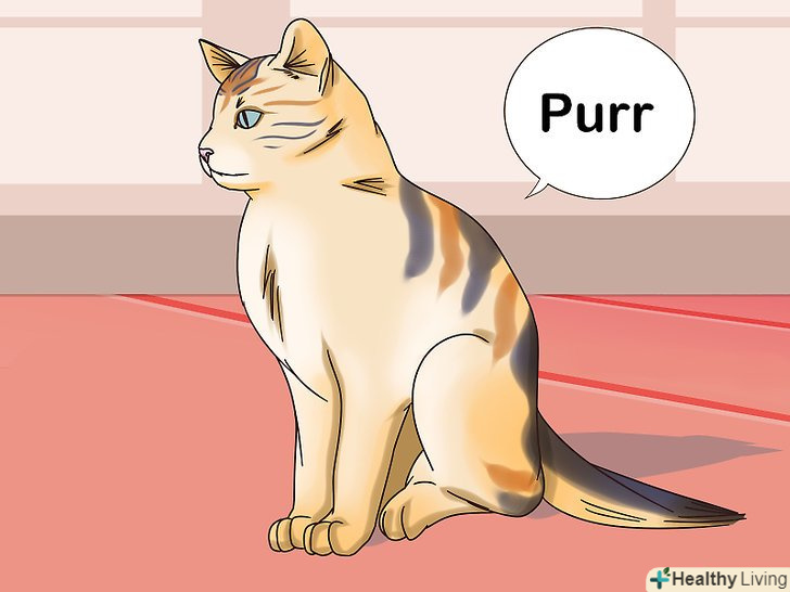 - Писк та інші звуки. Кішки рідко спілкуються з іншими кішками за допомогою голосу, однак для спілкування з людьми у них є багато варіантів звуків. Безумовно, кішка не може явно сказати, що їй потрібно, проте вона вчиться використовувати звуки певної висоти і інтонації для вираження своїх бажань людині. [6]