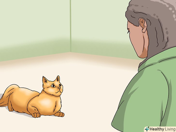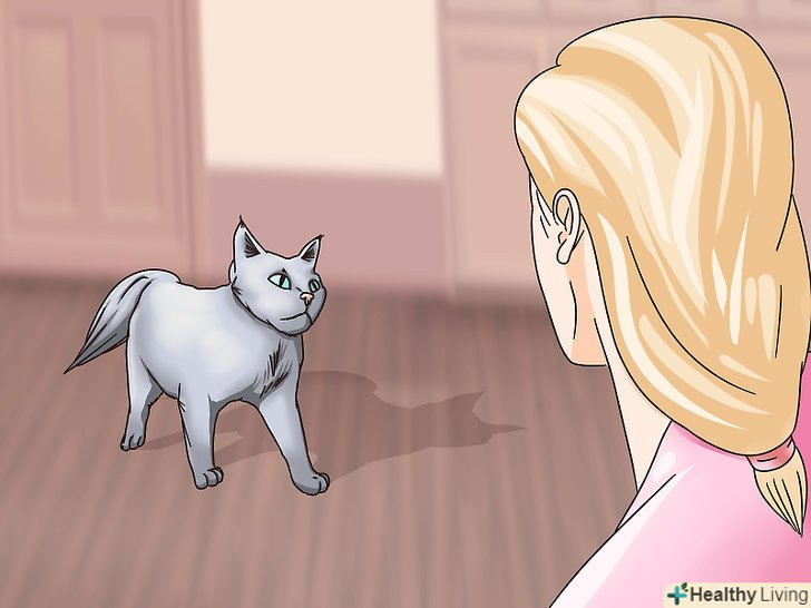 Дозвольте кішці підходити до вас. кішки відомі своєю незалежністю і часом навіть відстороненістю. Не сприймайте таку поведінку як ознака того, що ви не подобаєтеся кішці. Якщо кішка вирішує перебувати в одному приміщенні з вами, це означає, що вона цікавиться вами, навіть якщо вона не підходить до вас відразу ж.- Не дивіться кішці в очі тривалий час. Тривалий зоровий контакт сприймається багатьма тваринами як загроза. Якщо ви дивитеся на кішку, а вона дивиться на вас, повільно поморгайте, а потім відведіть погляд. Так ви дасте кішці зрозуміти, що не уявляєте для неї небезпеки. [2]