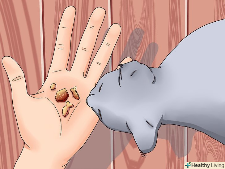 Давайте кішці ласощі. Археологи встановили, що перші кішки стали домашніми вихованцями, оскільки люди пригощали їх їжею або недоїдками. Завдяки цьому кішки залишалися в будинку. Їжа і ласощі можуть сприяти посиленню прихильності кішки до людини навіть в сучасних умовах. [3]- Не давайте кішці їжу зі столу. Це може призвести до небажаної поведінки: випрошування і крадіжки їжі, а також пошуку їжі на кухні, поки господар не бачить. Крім того, деякі продукти, придатні для людини, можуть викликати проблеми з травленням у кішок і навіть призводити до отруєння. Давайте кішці тільки спеціальну їжу і ласощі для кішок.