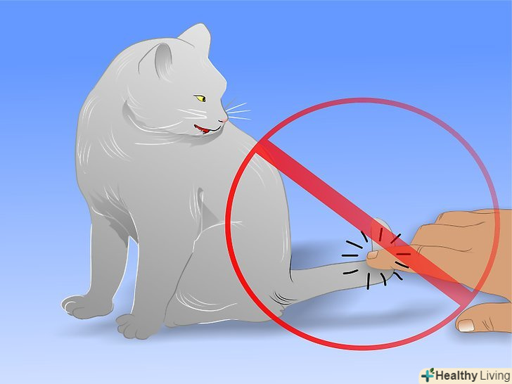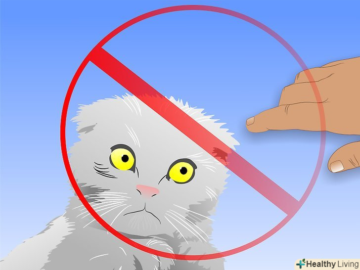 Не торкайтеся кота / кота в "заборонених" місцях. у котів/кішок, які зазнали жорстокого поводження з тваринами, такі місця не є рідкістю. Наприклад, якщо у кота/кішки був розбитий таз через те, що тварина штовхали ногами, він/вона не буде сприймати поплескування по стегнах як щось приємне, це буде асоціюватися з болем. Тому, якщо ви доторкнетеся до кота / кішки в цьому місці, він / вона буде шипіти або втече.- Якщо ви знаєте, де у вашого кота / кішки є подібні» заборонені " місця, поважайте бажання тварини, і не намагайтеся його там погладити. Не варто наполягати на фізичному контакті саме в цьому місці, розраховуючи на те, що кіт/кішка до цього звикне. Це помилкова думка.